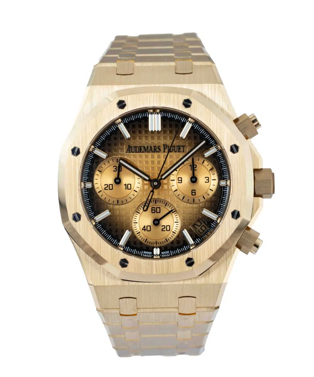 This Audemars Piguet Royal Oak 26240BA.OO.1320BA.02 has a Champagne dial and a Bracelet strap.