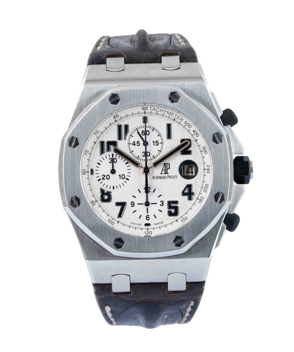 This Audemars Piguet Royal Oak Offshore 26170ST.OO.D091CR.01 has a White dial and a Leather strap.