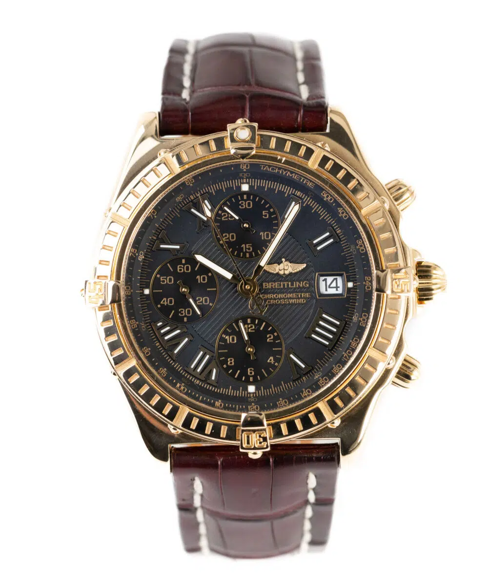 This Breitling Crosswind Chronograph K13355 has a Black dial and a Leather strap.
