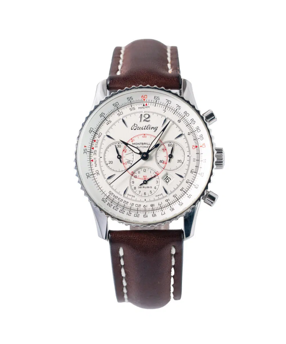 This Breitling Montbrilliant A41330 has a White dial and a Leather strap.