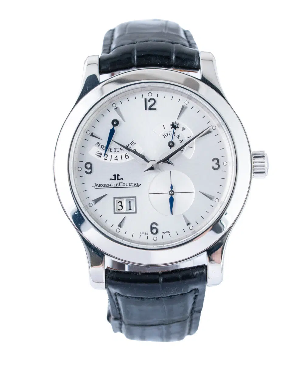 This Jaeger-LeCoultre Master Eight Days 1606420 has a Silver dial and a Leather strap.
