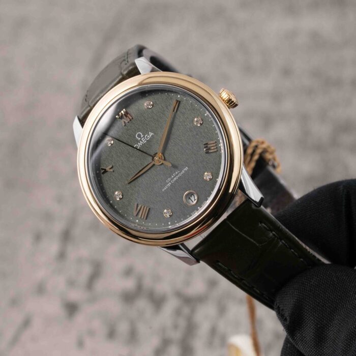 This Omega De Ville Prestige 434.23.34.20.60.001 has a Green dial and a Leather strap.