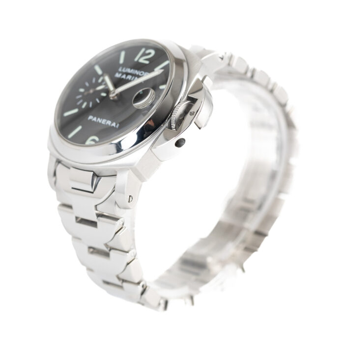 This Panerai Luminor Marina OP6560 has a Black dial and a Bracelet strap.