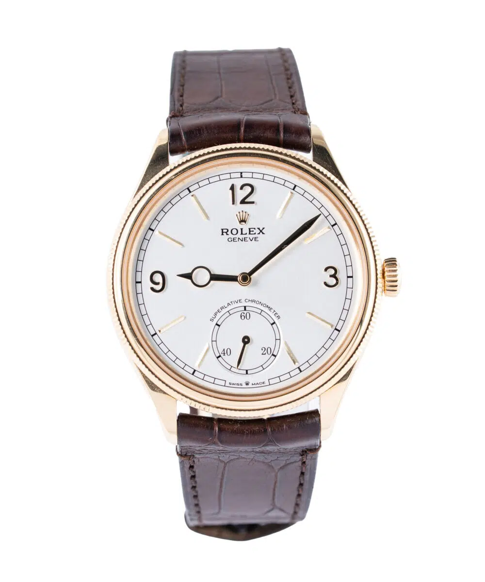 This Rolex 1908 52508 has a White dial and a Leather strap.