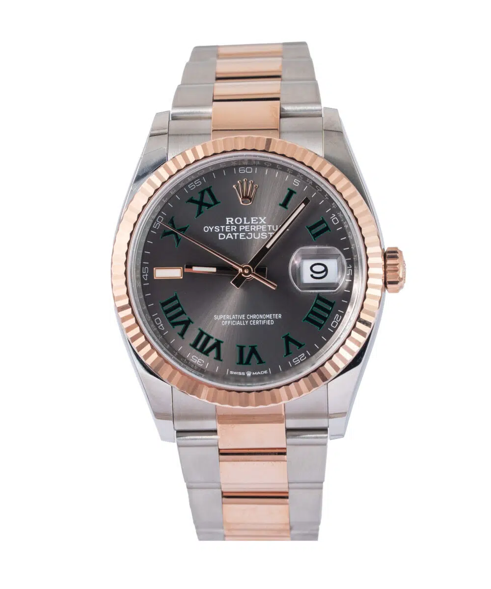 This Rolex Datejust 126231 has a Grey dial and a Bracelet strap.
