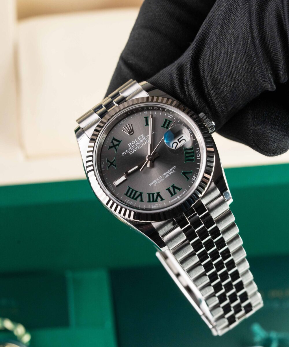 This Rolex Datejust 126234 has a Grey dial and a Bracelet strap.