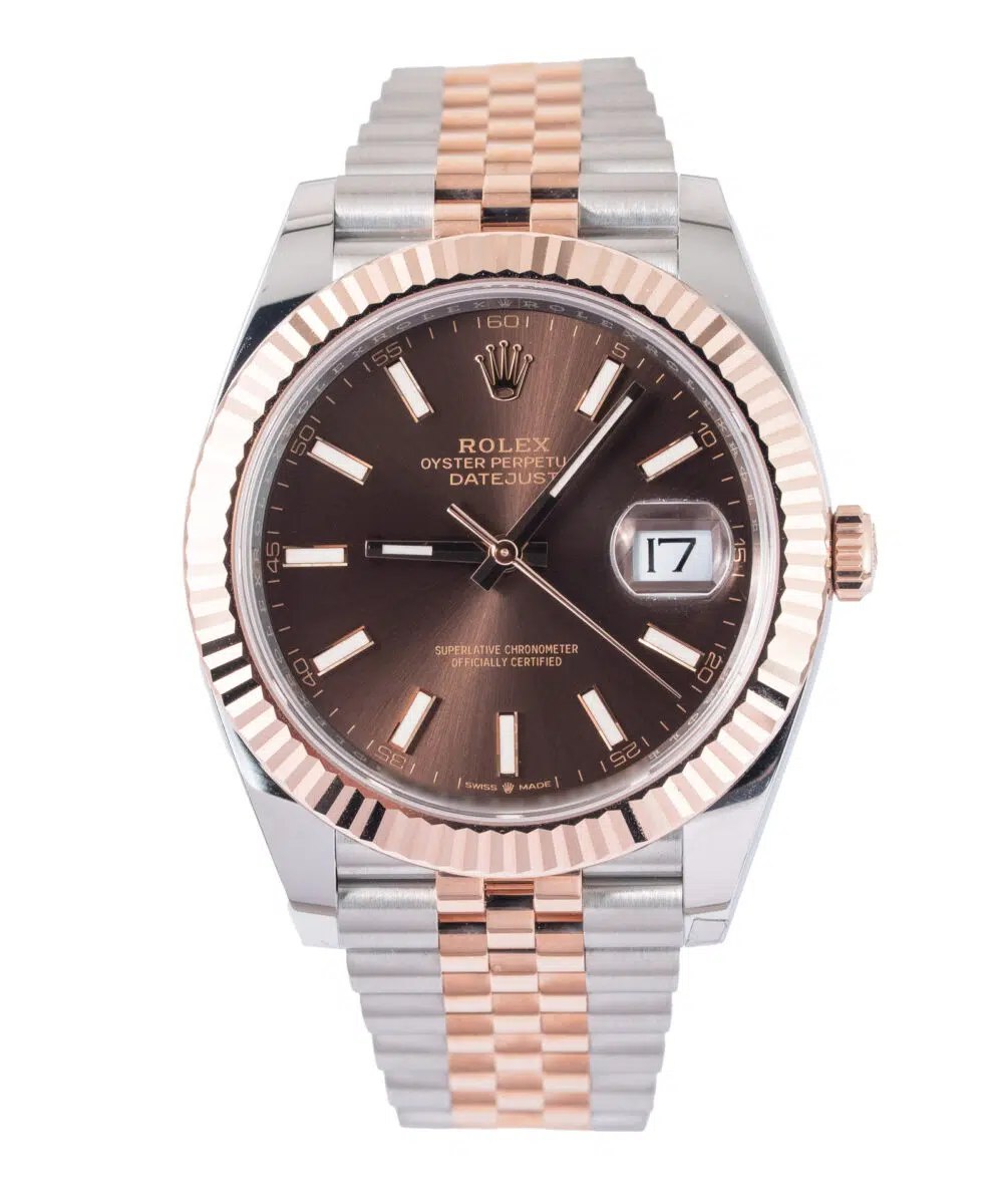 This Rolex Datejust 126331 has a Brown dial and a Bracelet strap.