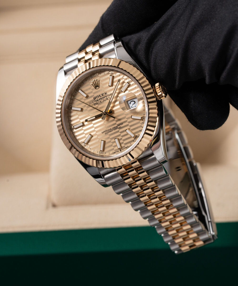 This Rolex Datejust 126333 has a Champagne dial and a Bracelet strap.