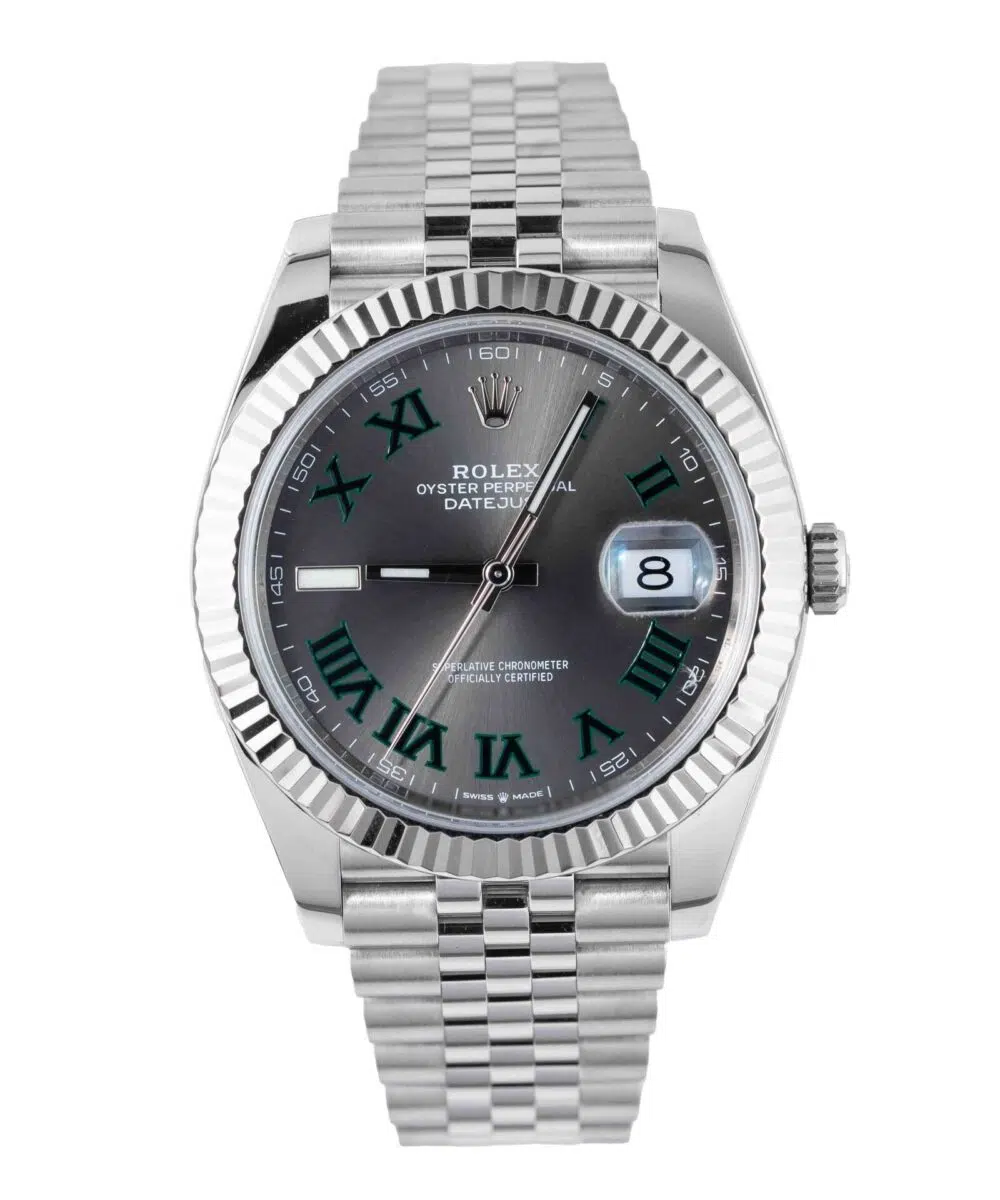 This Rolex Datejust 126334 has a Grey dial and a Bracelet strap.