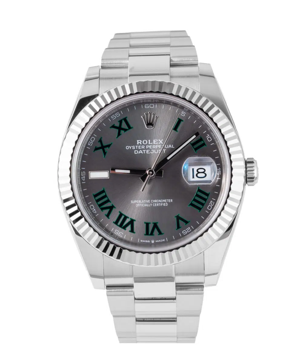 This Rolex Datejust 126334 has a Grey dial and a Bracelet strap.