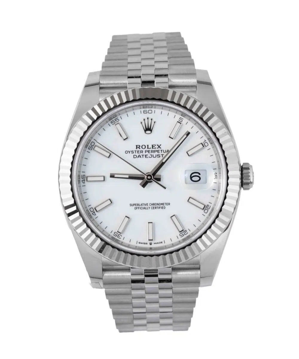 This Rolex Datejust 126334 has a White dial and a Bracelet strap.