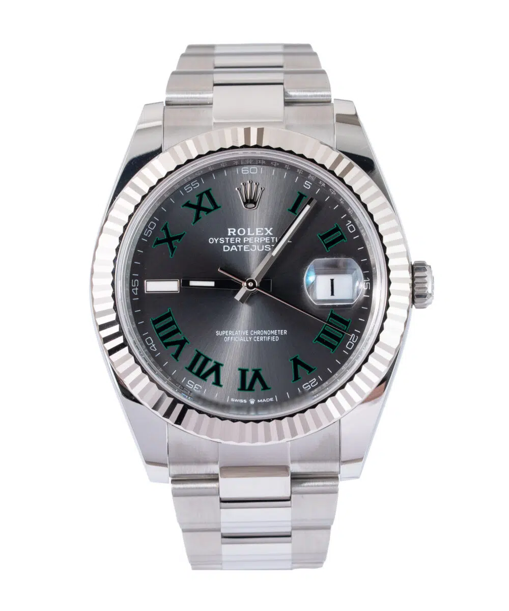 This Rolex Datejust 126334 has a Grey dial and a Bracelet strap.