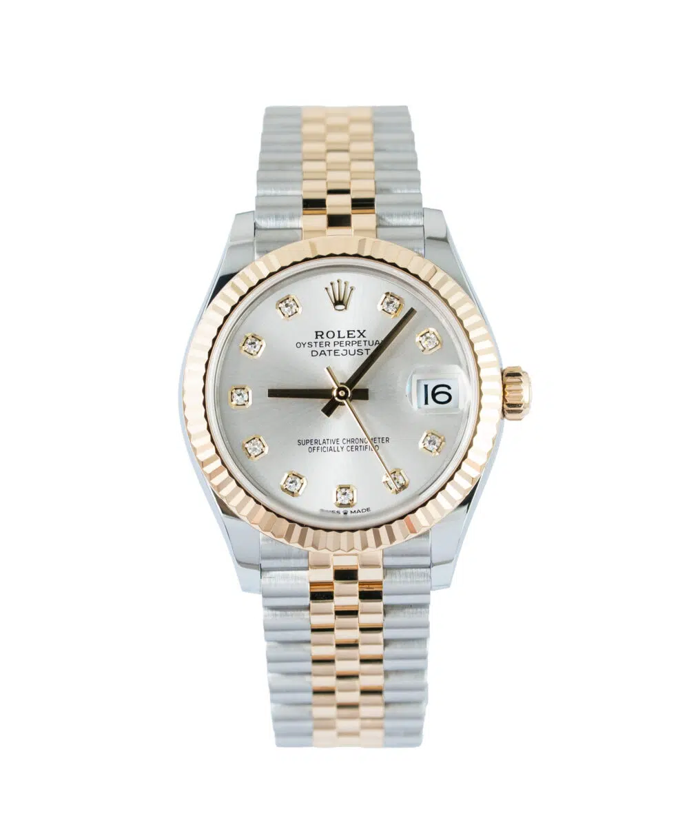 This Rolex Datejust 278273 has a Silver dial and a Bracelet strap.