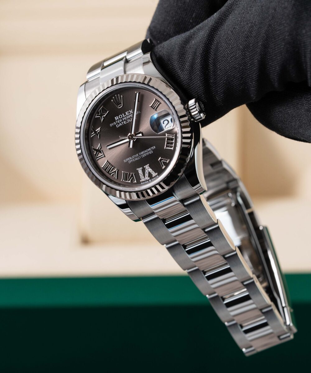 This Rolex Datejust 278274 has a Black dial and a Bracelet strap.