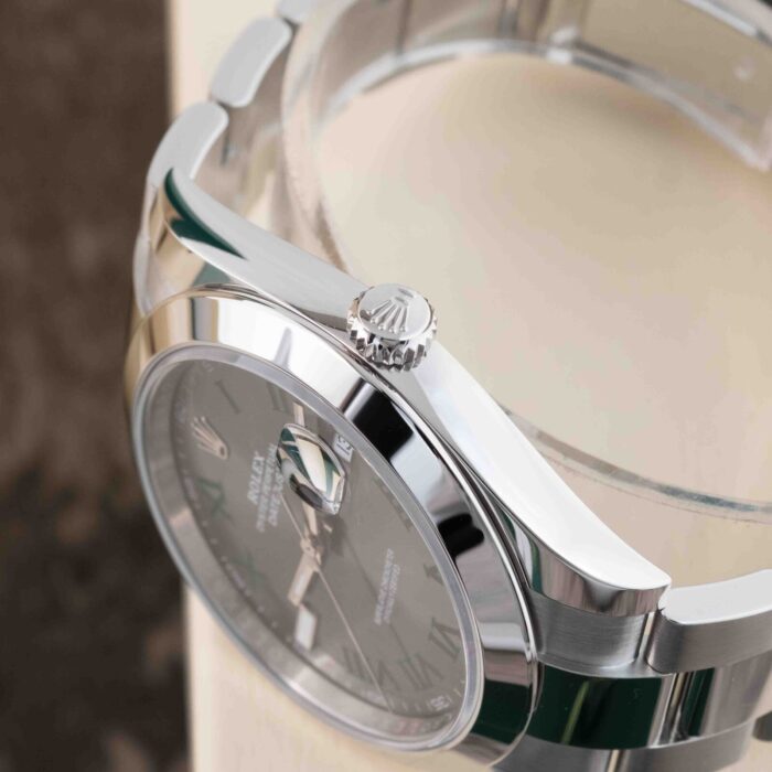 This Rolex Datejust 126300 has a Grey dial and a Bracelet strap.