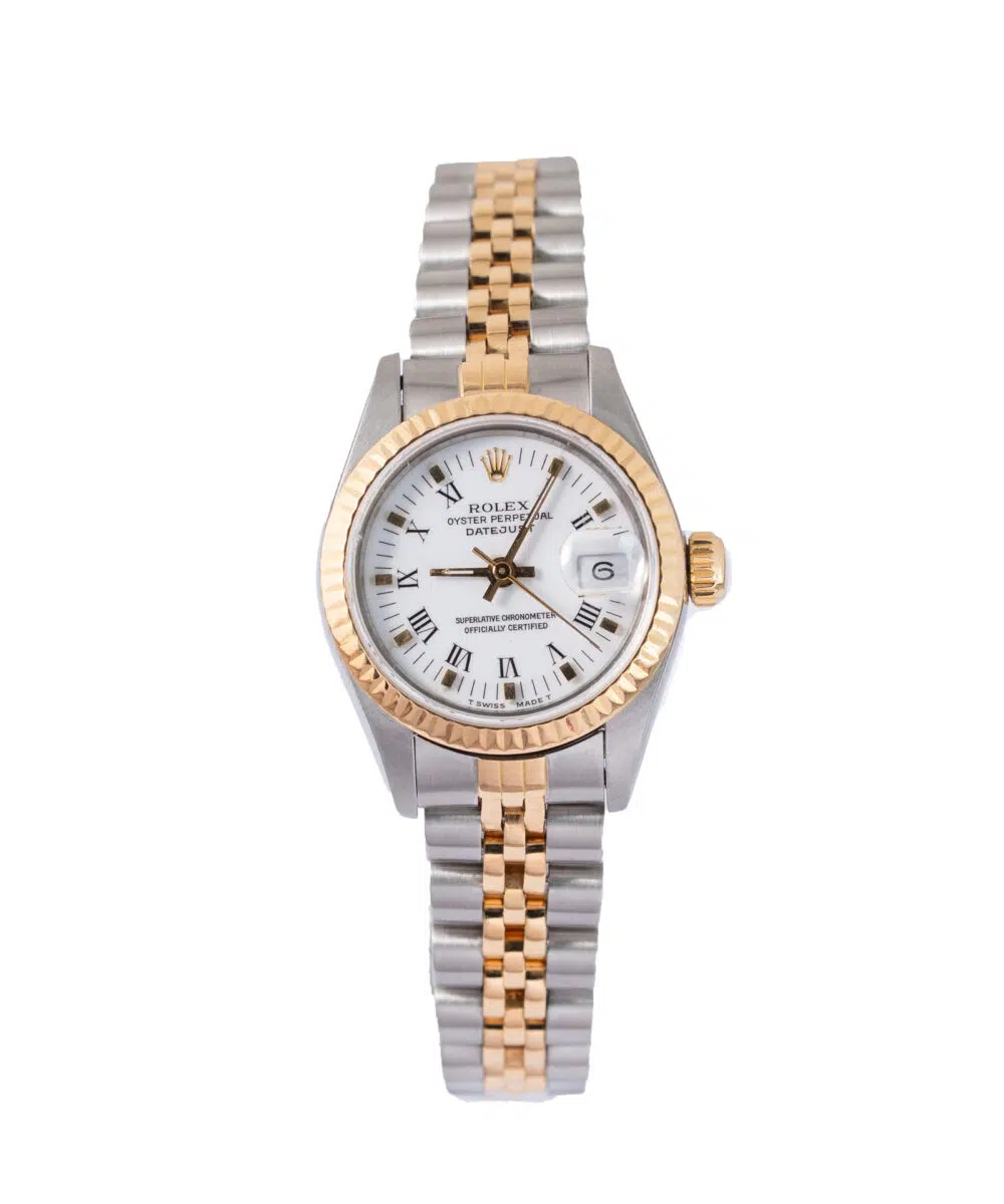 This Rolex Datejust 69173 has a White dial and a Bracelet strap.