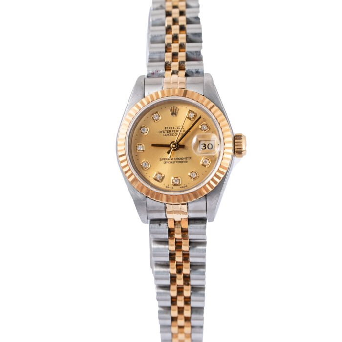 This Rolex Datejust 69173 has a Champagne dial and a Bracelet strap.