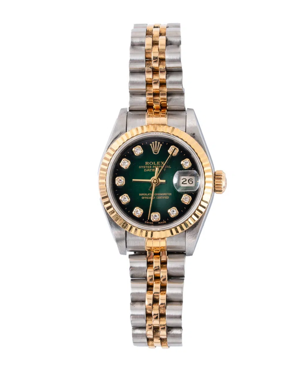 This Rolex Datejust 69173 has a Champagne dial and a Bracelet strap.