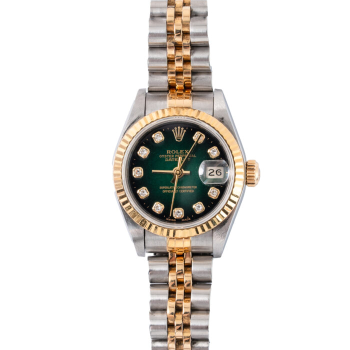 This Rolex Datejust 79173 has a Champagne dial and a Bracelet strap.