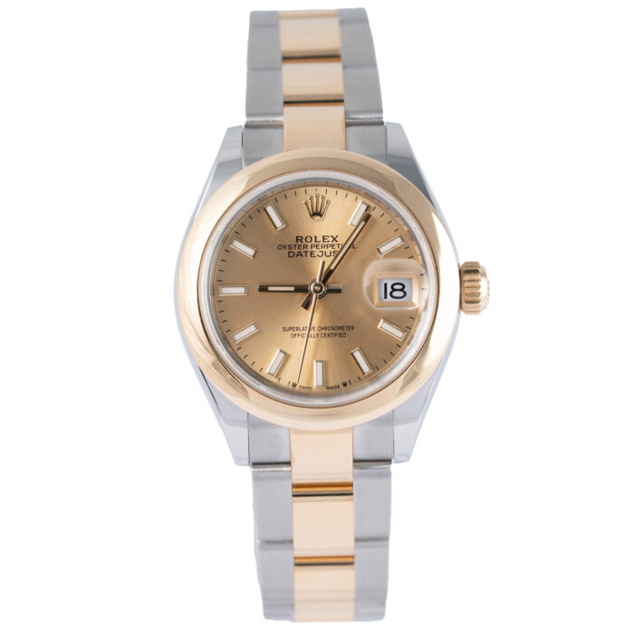 This Rolex Datejust 279174 has a Silver dial and a Jubilee strap.