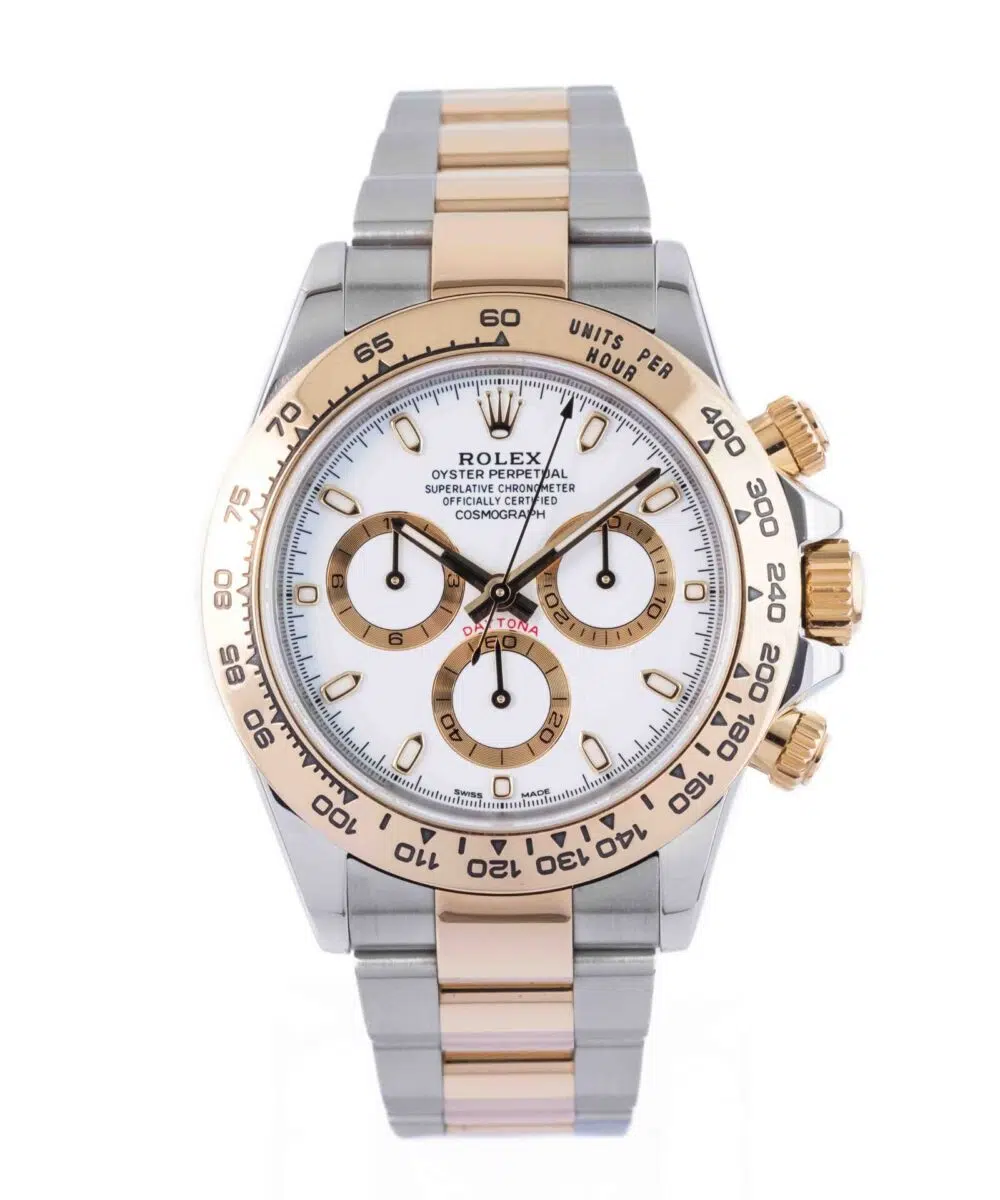 This Rolex Daytona 116503 has a White dial and a Bracelet strap.