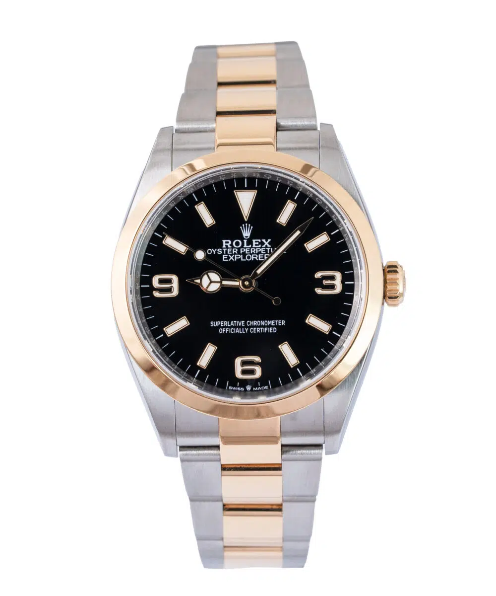 This Rolex Explorer 124273 has a Black dial and a Bracelet strap.