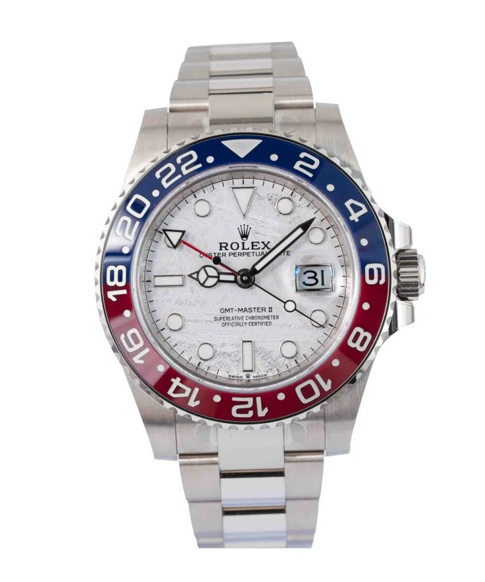 This Rolex GMT-Master II 126719BLRO has a Meteorite dial and a Bracelet strap.