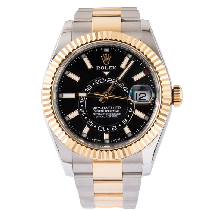 This Rolex Sky-Dweller 326934 has a White dial and a Bracelet strap.