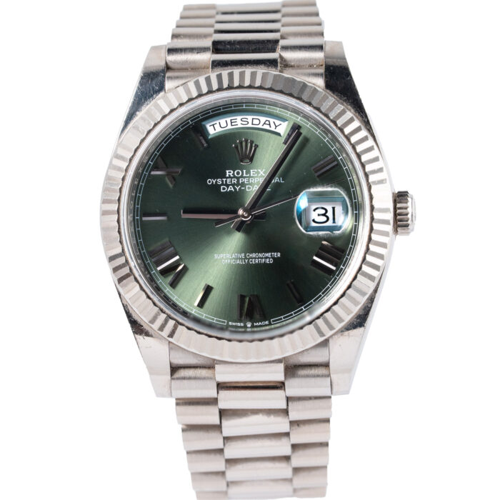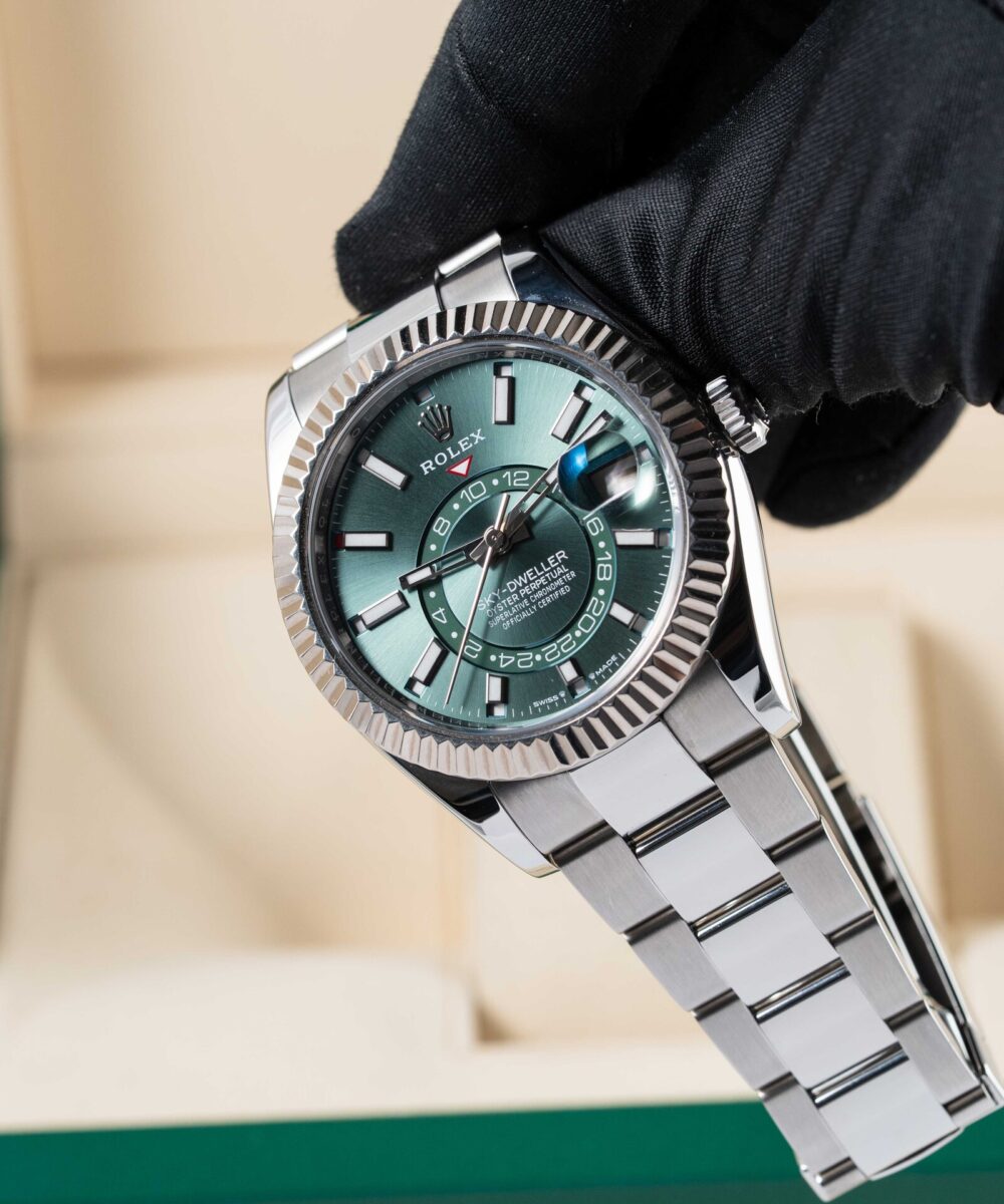 This Rolex Sky-Dweller 336934 has a Green dial and a Bracelet strap.