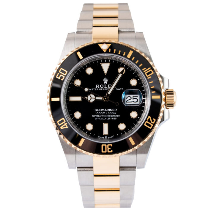 This Rolex Submariner 126610LN has a Black dial and a Bracelet strap.