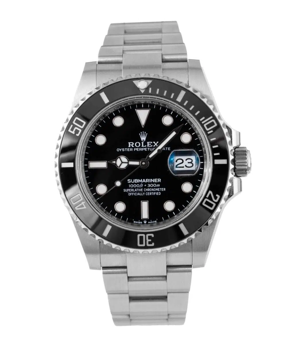 This Rolex Submariner 126610LN has a Black dial and a Bracelet strap.