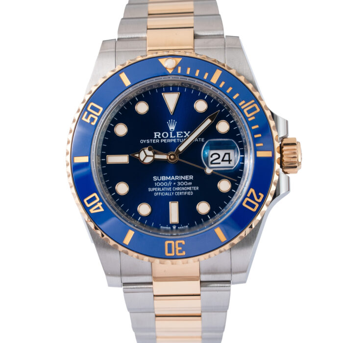 This Rolex Submariner 126610LN has a Black dial and a Bracelet strap.