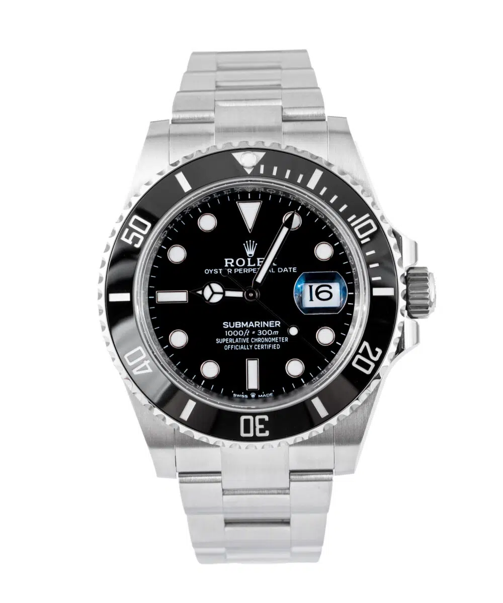 This Rolex Submariner 126610LN has a Black dial and a Bracelet strap.