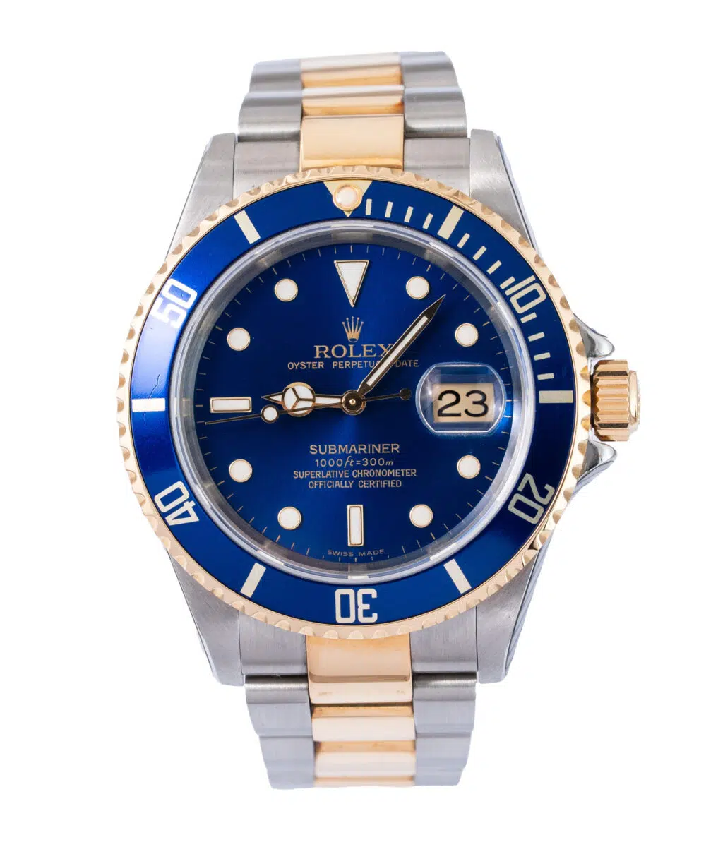 This Rolex Submariner 16613 has a Blue dial and a Bracelet strap.