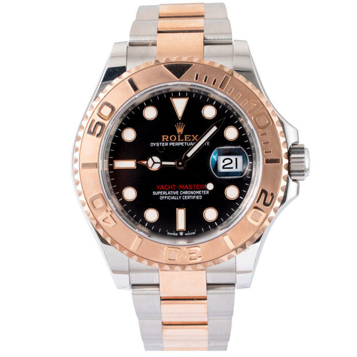This Rolex Yacht-Master 126621 has a Black dial and a Bracelet strap.