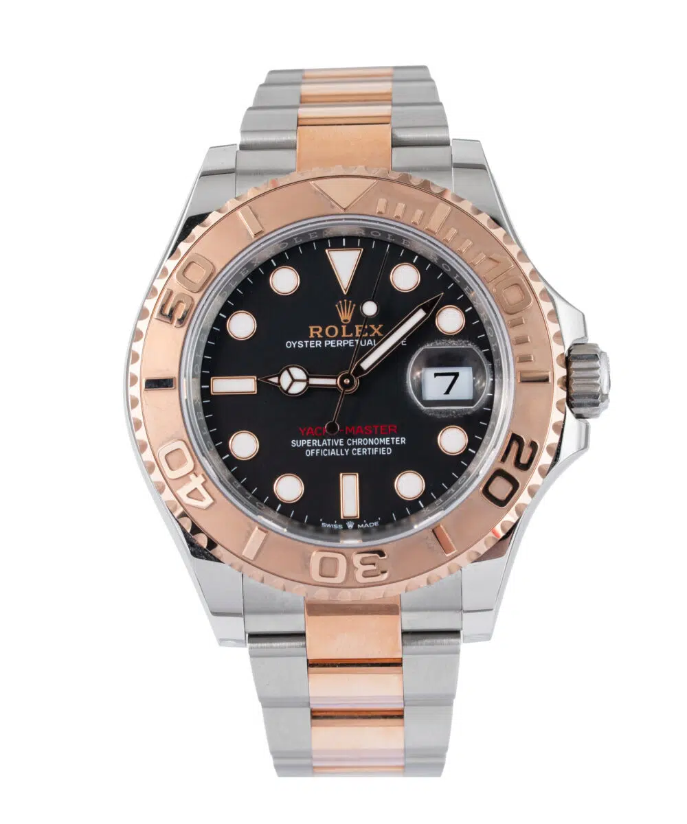 This Rolex Yacht-Master 126621 has a Black dial and a Bracelet strap.