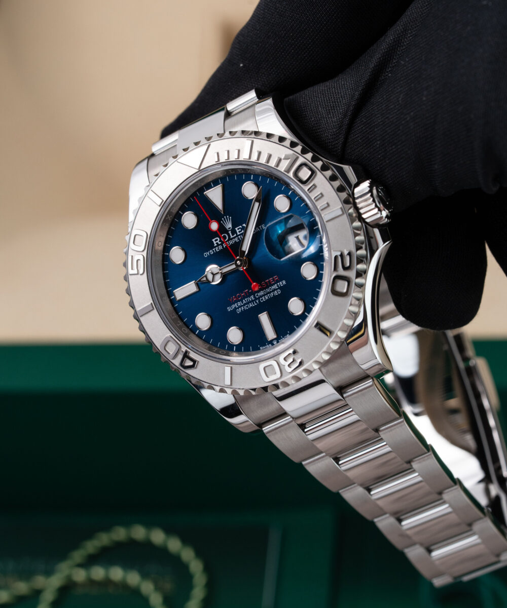 This Rolex Yacht-Master 126622 has a Blue dial and a Bracelet strap.