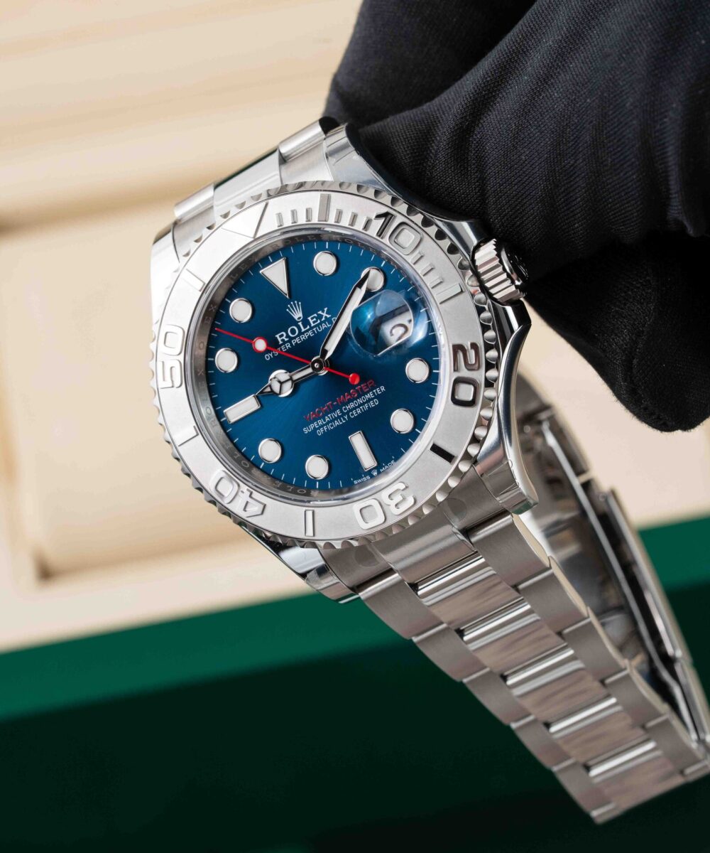 This Rolex Yacht-Master 126622 has a Blue dial and a Bracelet strap.