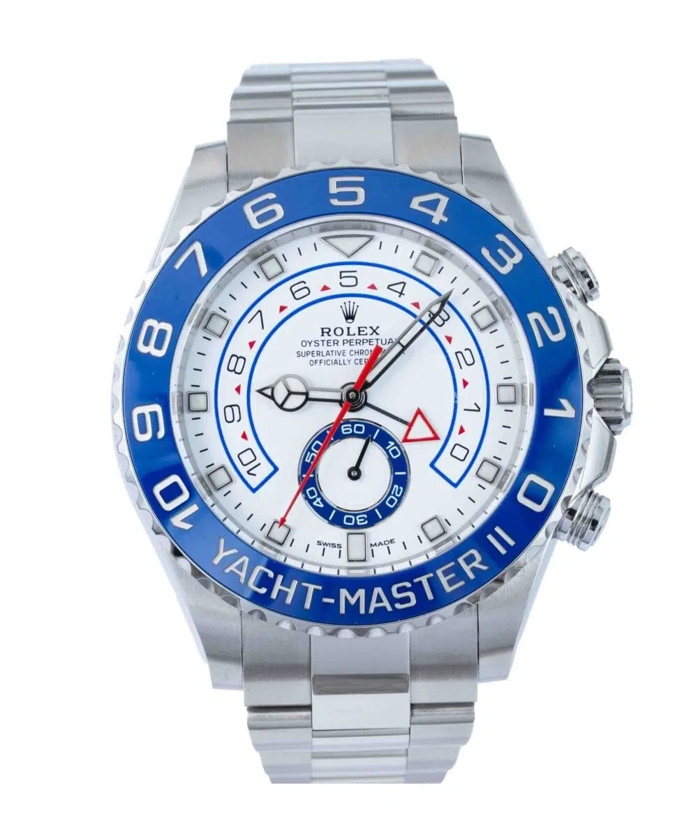This Rolex Yacht-Master II 116680 has a White dial and a Bracelet strap.