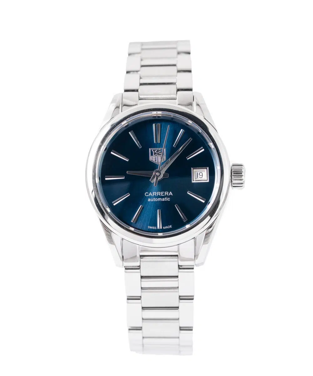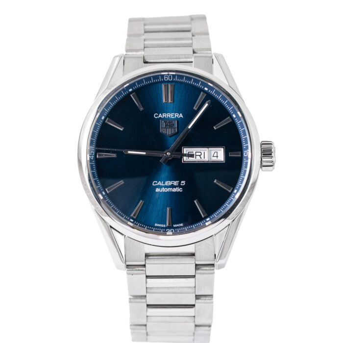 This Tag Heuer Carrera Automatic WAR2419 has a Blue dial and a Bracelet strap.