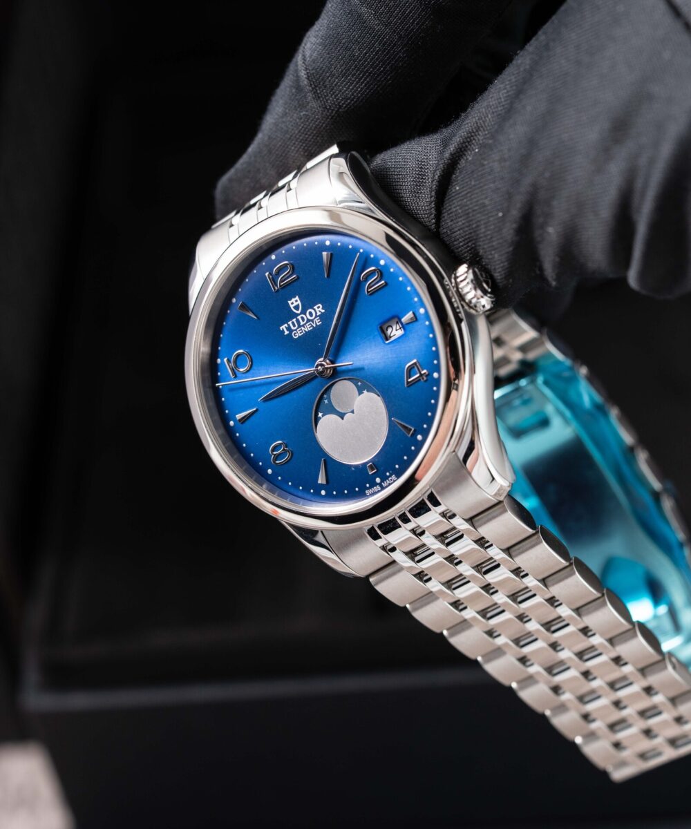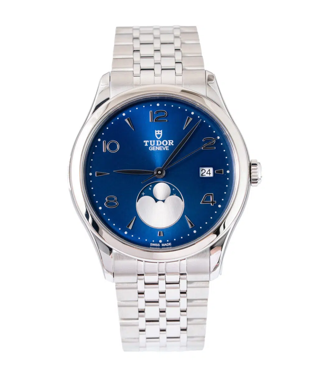 This Tudor 1926 Luna 91560 has a Blue dial and a Bracelet strap.