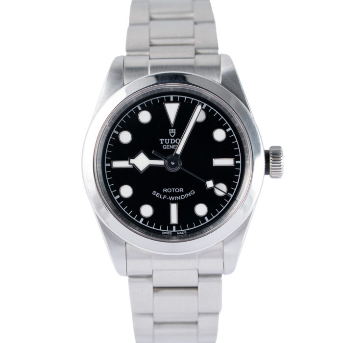 This Tudor Black Bay 79733N has a Black dial and a Leather strap.