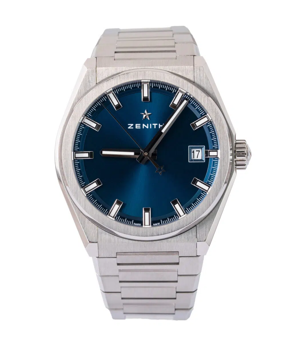 This ZENITH Defy Classic 95.9000.670 has a Blue dial and a Bracelet strap.