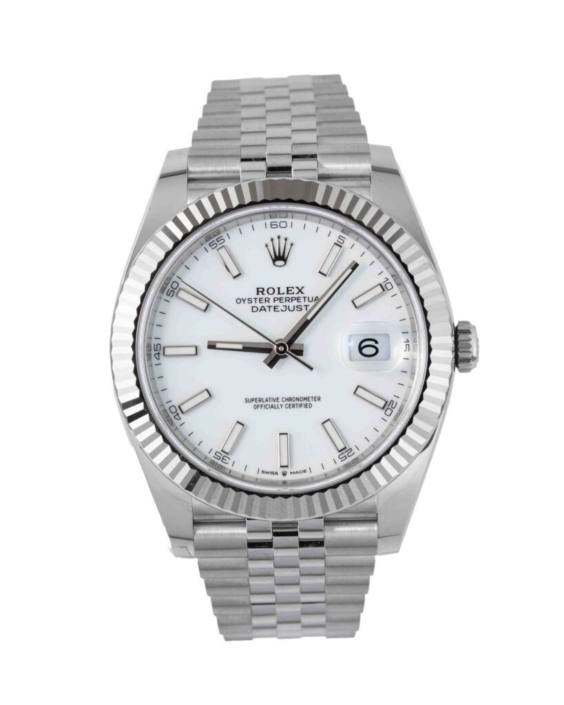 brand: Rolex Reference: 126334 Model: Datejust case MATERIAL: Steel strap: Bracelet case Size (MM): 41mm Dial colour: White Bezel: White Gold Year: 07/2022 Condition: Excellent Box papers : Paperwork/box