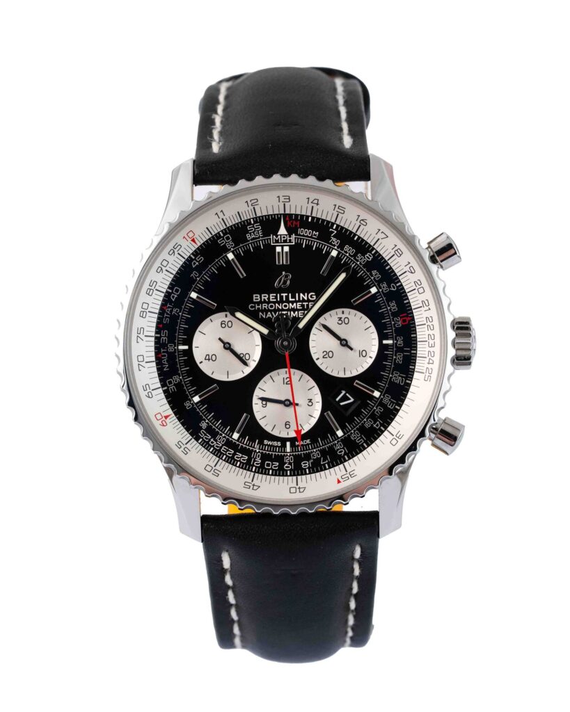 brand: Breitling Reference: AB0127 Model: Navitimer case MATERIAL: Steel strap: Leather case Size (MM): 46mm Dial colour: Black Bezel: Steel Condition: Excellent Box papers : Paperwork/box