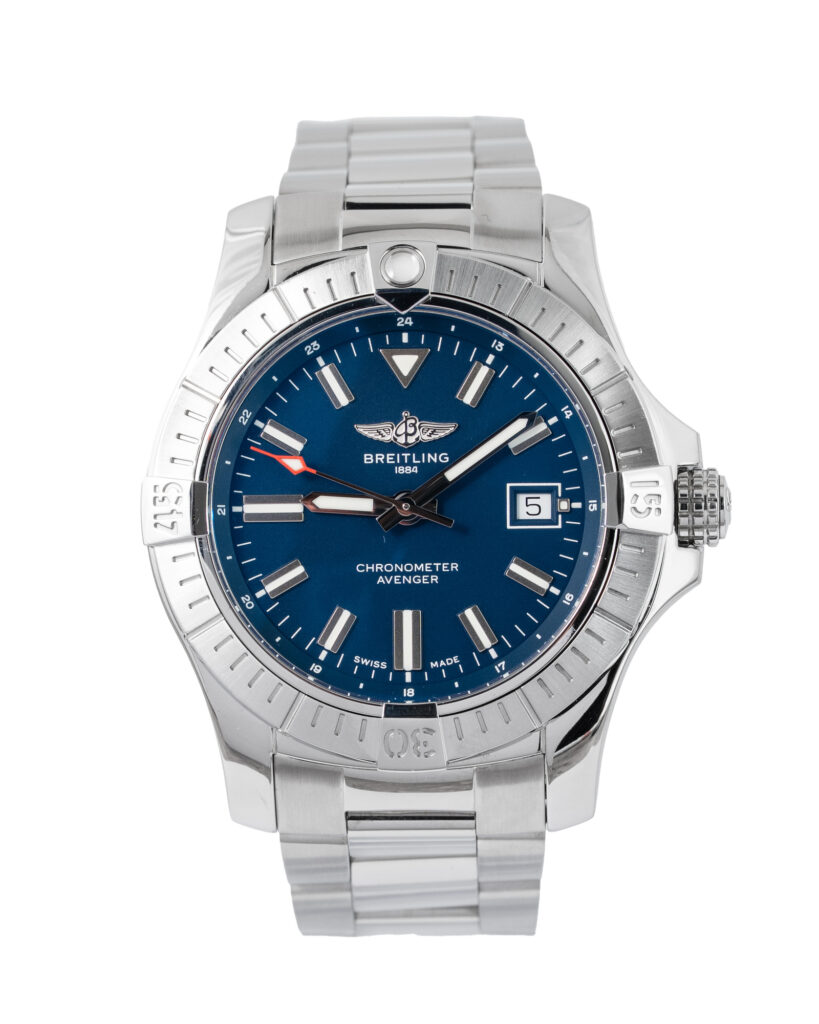 brand: Breitling Reference: A17318 Model: Avenger Automatic 43 case MATERIAL: Steel strap: Bracelet case Size (MM): 43mm Dial colour: Blue Bezel: Steel Year: 10/2022 Condition: Excellent Box papers : Paperwork/box