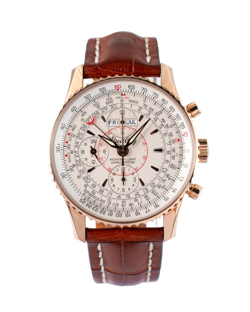 brand: Breitling Reference: R21330-0412 Model: Montbrillant Datora case MATERIAL: Rose Gold strap: Leather case Size (MM): 43mm Dial colour: White Bezel: Rose Gold Year: 09/2009 Condition: Excellent Box papers : Paperwork/box