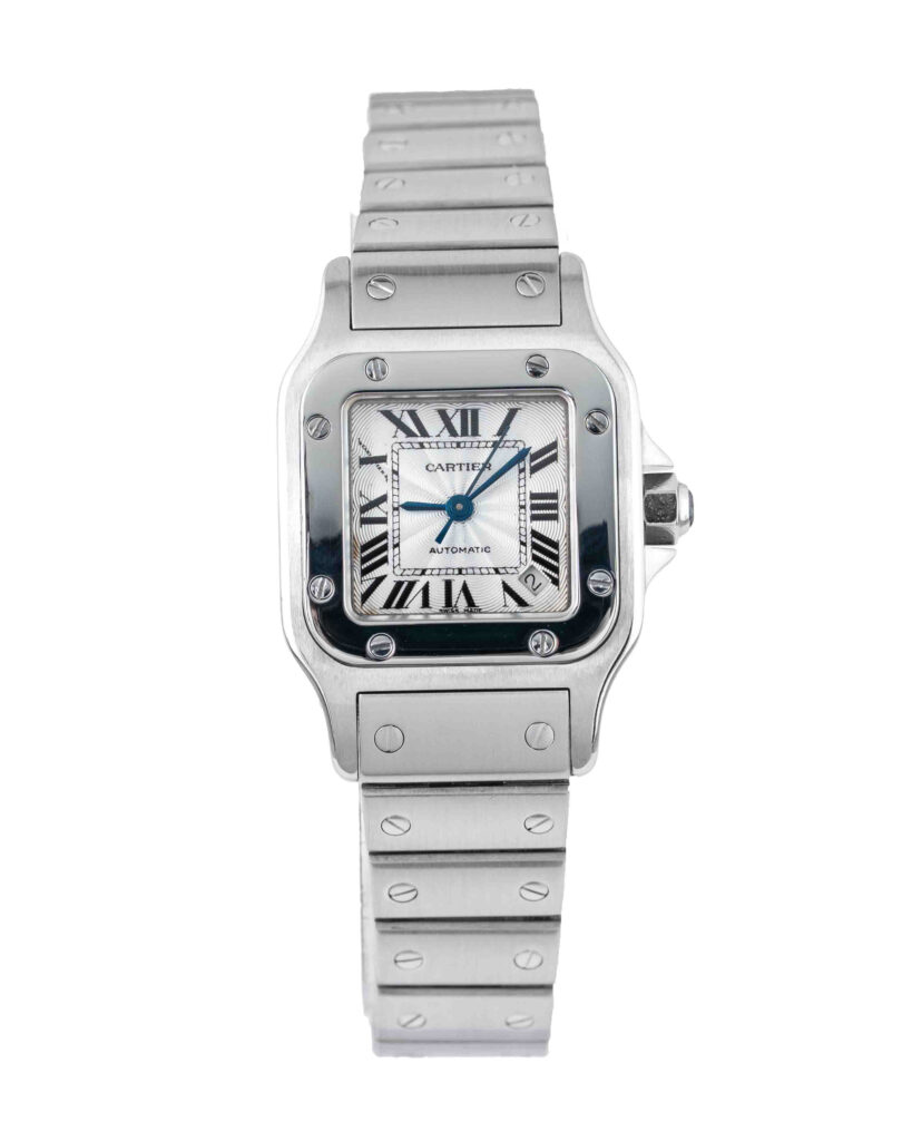 brand: Cartier Reference: 2423 Model: Santos Galbée case MATERIAL: Steel strap: Bracelet case Size (MM): 24mm Dial colour: Silver Bezel: Steel Year: 12/2004 Condition: Excellent Box papers : Paperwork/box