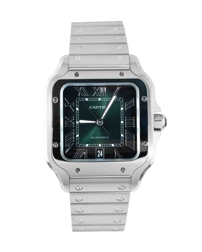brand: Cartier Reference: WSSA0062 Model: Santos De Cartier case MATERIAL: Steel strap: Bracelet case Size (MM): 40mm Dial colour: Green Bezel: Steel Year: 06/2024 Condition: Excellent Box papers : Paperwork/box