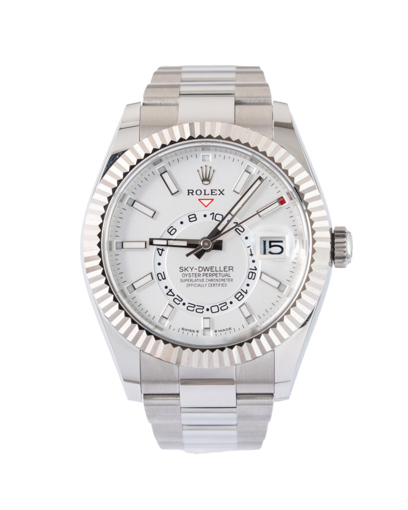 brand: Rolex Reference: 336934 Model: Sky-Dweller case MATERIAL: Steel strap: Bracelet case Size (MM): 42mm Dial colour: White Bezel: White Gold Year: 02/2026 Condition: Excellent Box papers : Paperwork/box